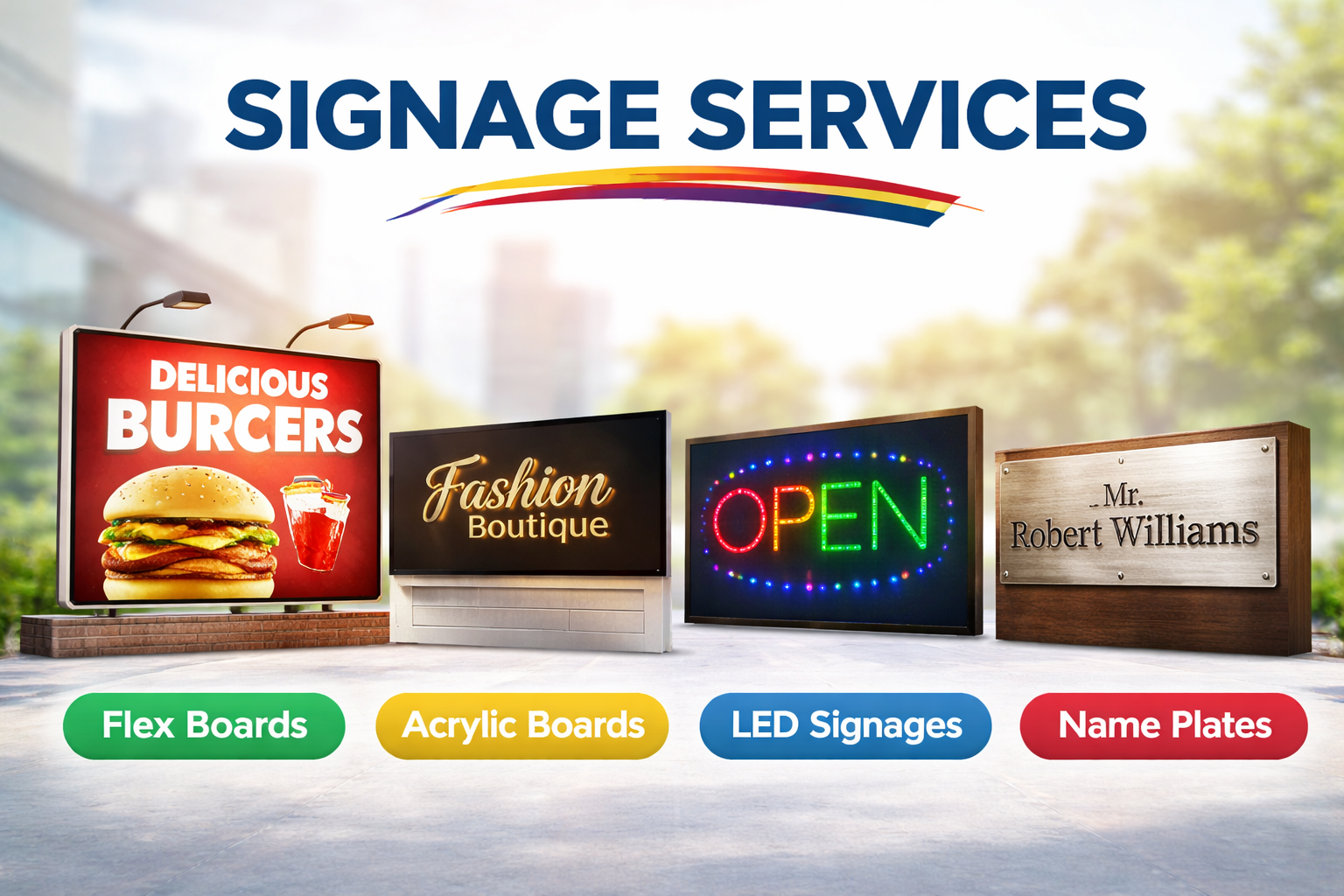 We provide complete signage solutions from concept to installation. Our team handles design, material selection, fabrication, and professional installation to ensure flawless execution. Whether it’s outdoor signboards, indoor branding, LED signage, or printed displays, we deliver consistent quality, durability, and timely results for every project.